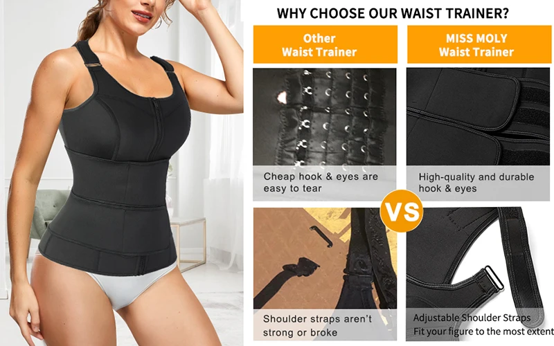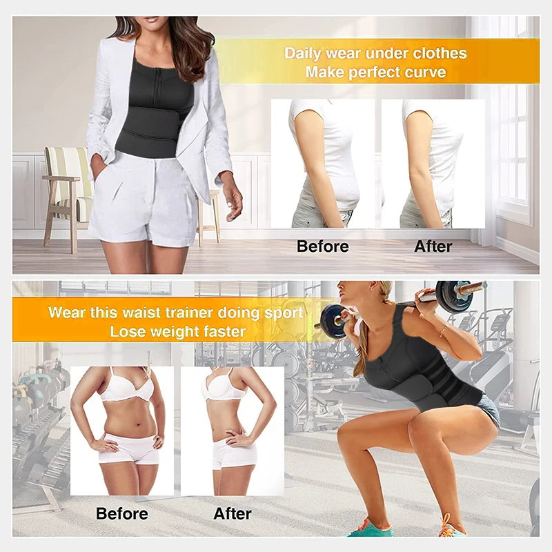 Quality Material - Made of 2.3mm high-quality fabric, Shell: 100% Polyester; Lining: 100% Neoprene, Smooth, comfortable, close-fitting, can be worn inside and outside, good elasticity, not easy to wrinkle. The Sauna Suit with Double Belly Compression Belts has an important role in daily training. โPackage Quantity: 1x Waist trainer vest.โ